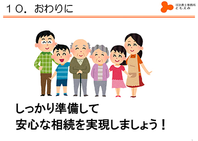 ![]()  実施報告 2016年 自分の想いを伝える遺言の仕方 いざというとき「慌てない」「損しない」「もめない」ための遺言・相続の基礎知識 おおさかパルコープ国松パル委員会様の学習会にて、司法書士事務所ともえみの代表山口良里子が講...