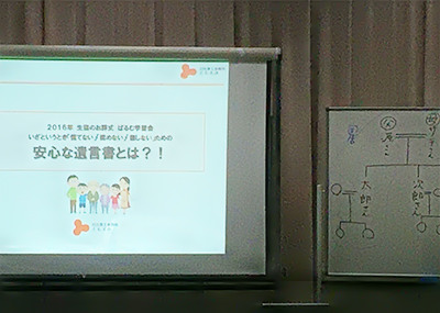 ![]()  実施報告 2016年 自分の想いを伝える遺言の書き方 「実際に相続が始まってみたら親族でもめて大変だった。」 「もし遺言があったら良かったのに・...