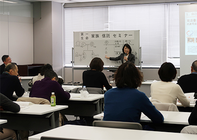 ![]()  実施報告 2018年 安心な老後としあわせの家族信託セミナー2018 2018年3月7日に第一生命様主催、「安心な老後としあわせの家族信託セミナー2018」にて...