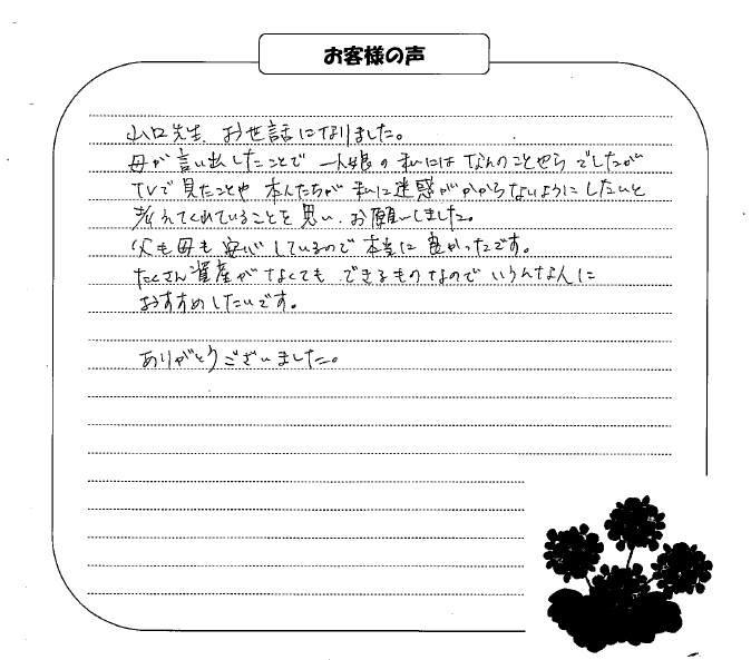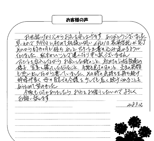 ![]()  母もよかったと言ってくれ、1つ肩の荷がおりたようでホッとしています