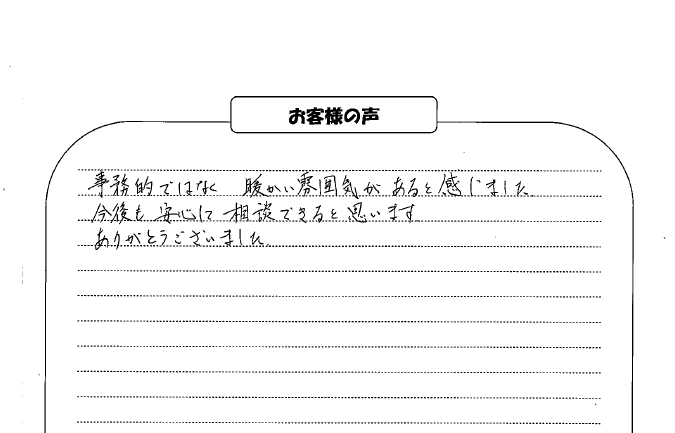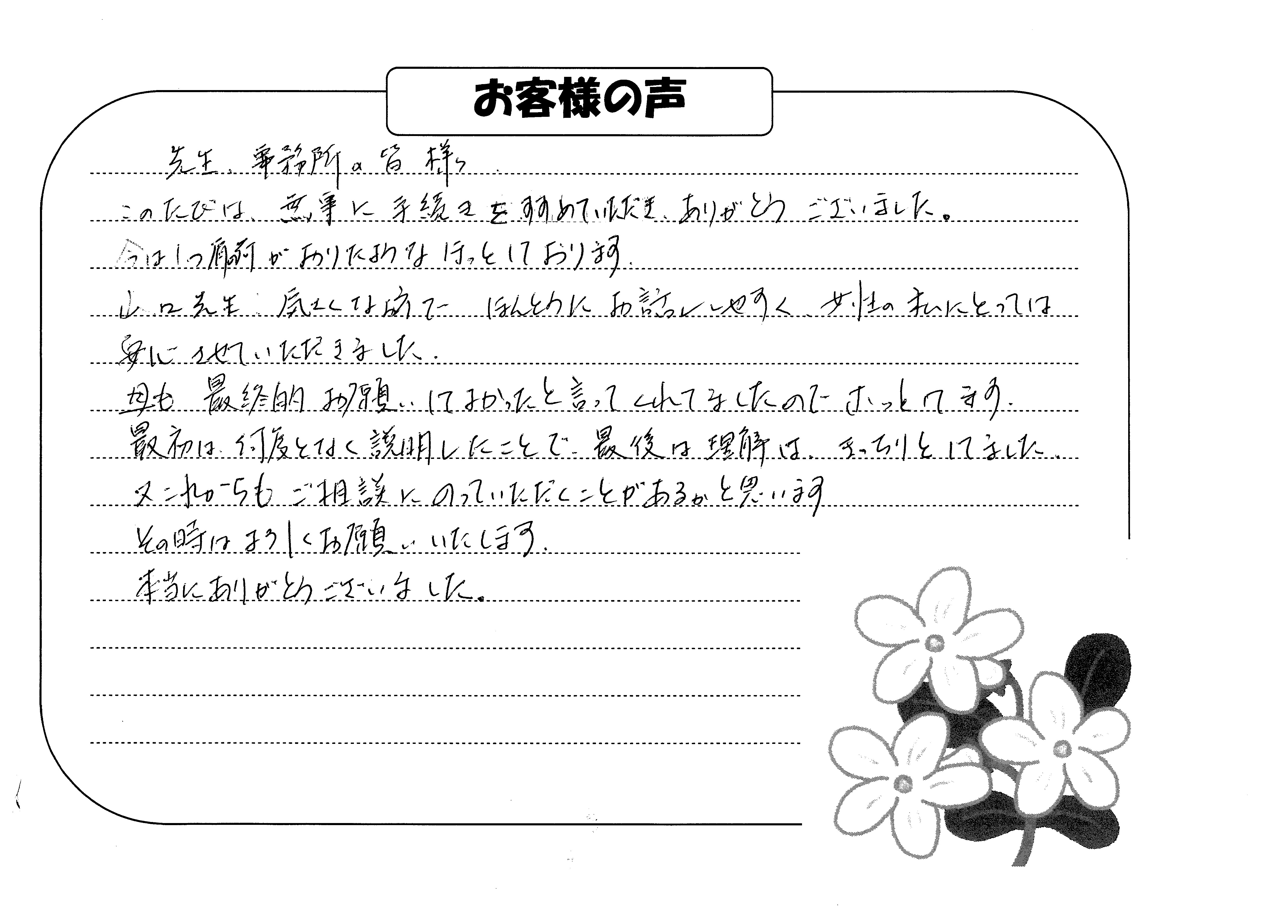 ![]()  公証役場、信託銀行への付き添いまで。本当に心強かったです