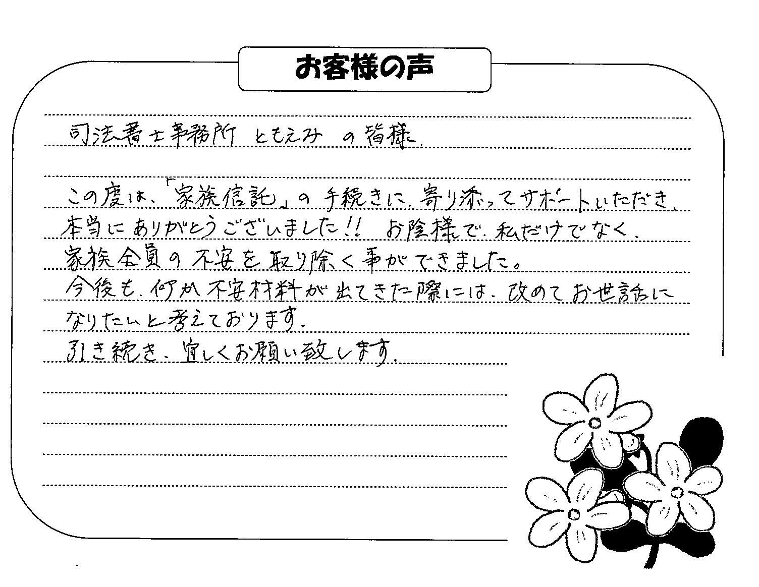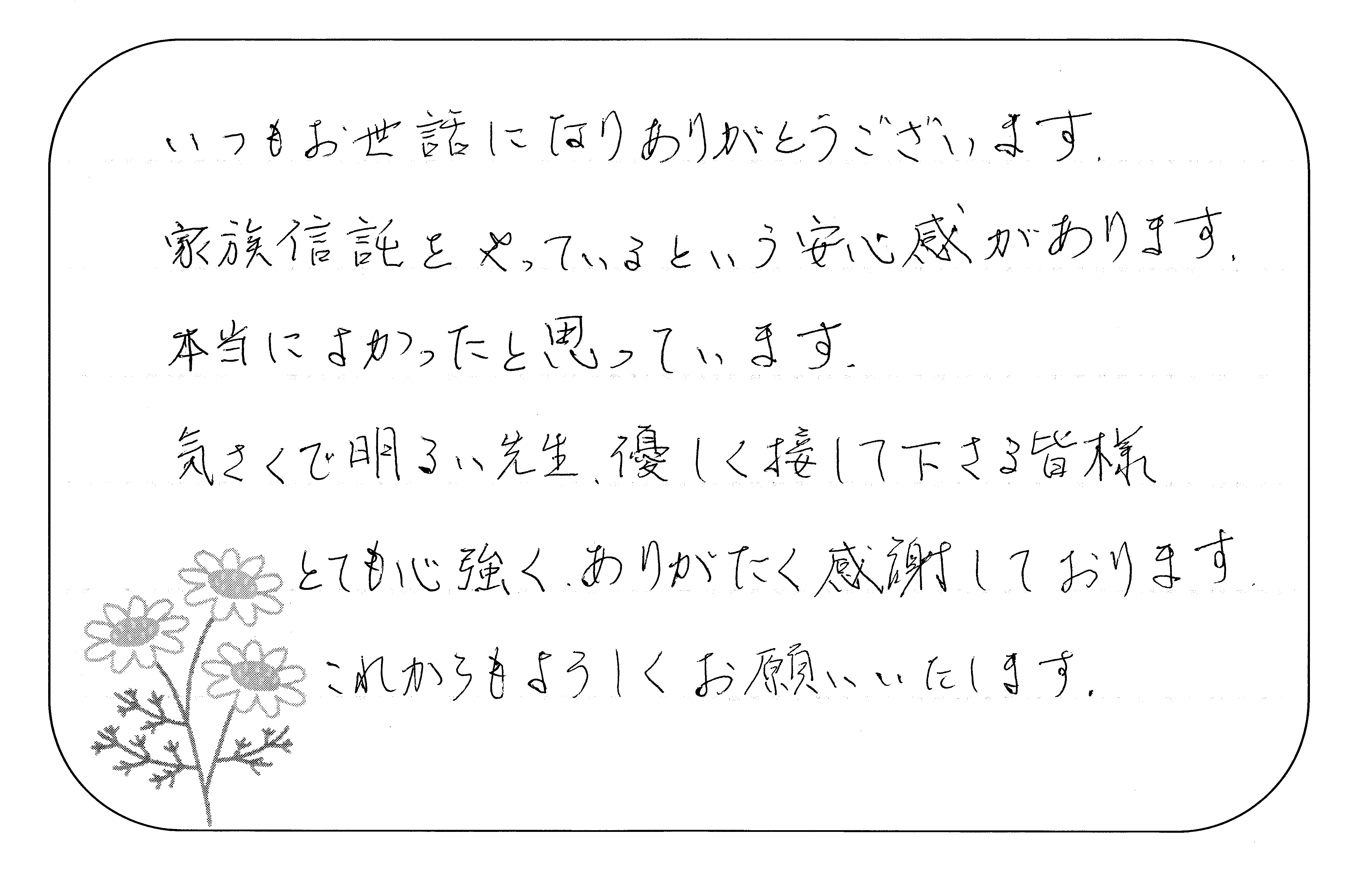 ![]()  私だけでなく、家族全員の不安を取り除く事ができました